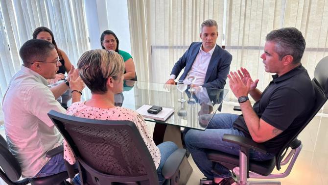 Acompanhado de um grupo de ciclistas, o deputado estadual Neto Evangelista se reuniu com o presidente da Agência de Mobilidade Urbana (MOB), Adriano Sarney, para discutir ações de segurança na Avenida Litorânea. O encontro foi motivado pelo atropelamento que levou a óbito o médico e ciclista Édson Soares, na manhã desta sexta-feira (29).